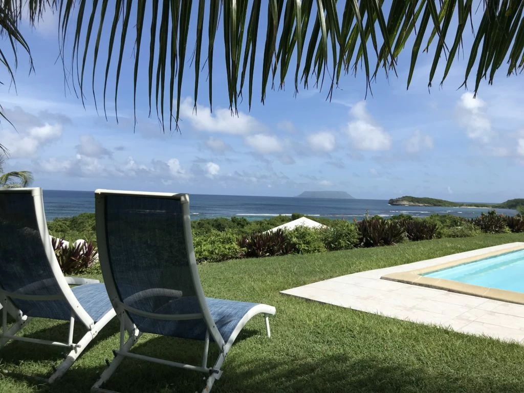 Depuis les transats, vous vous attardez à admirer la vue magnifique. Vous remarquez l’ile de la Désirade au loin, la pointe de l’anse Tarare et la barrière de corail de l’Anse À La Gourde devant la villa. Vous pourrez en profiter pleinement pendant toutes vos vacances.